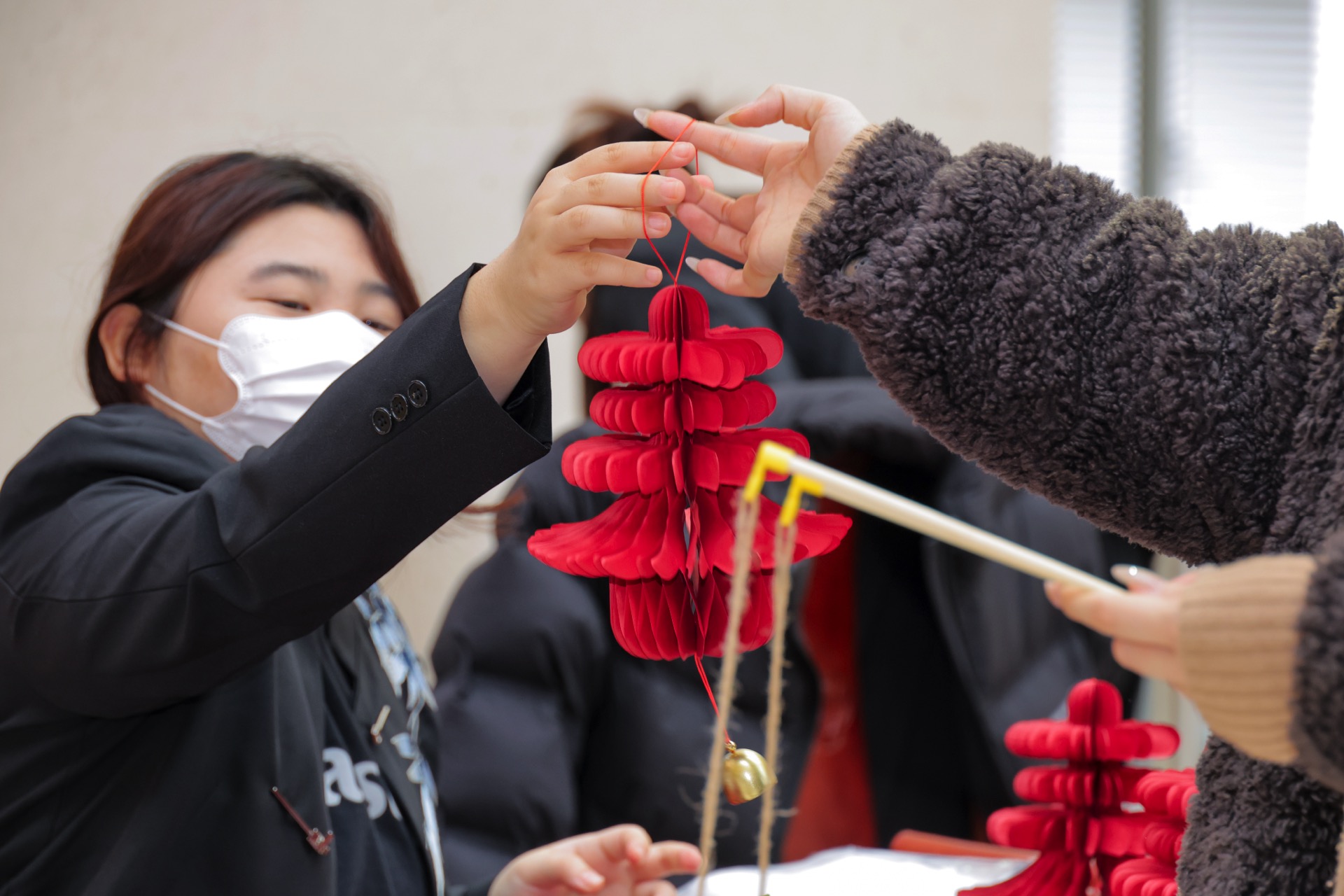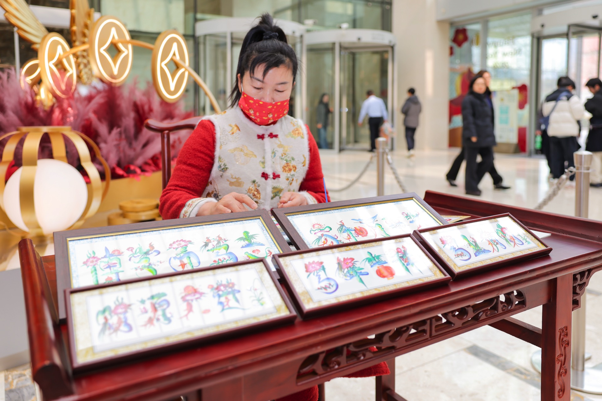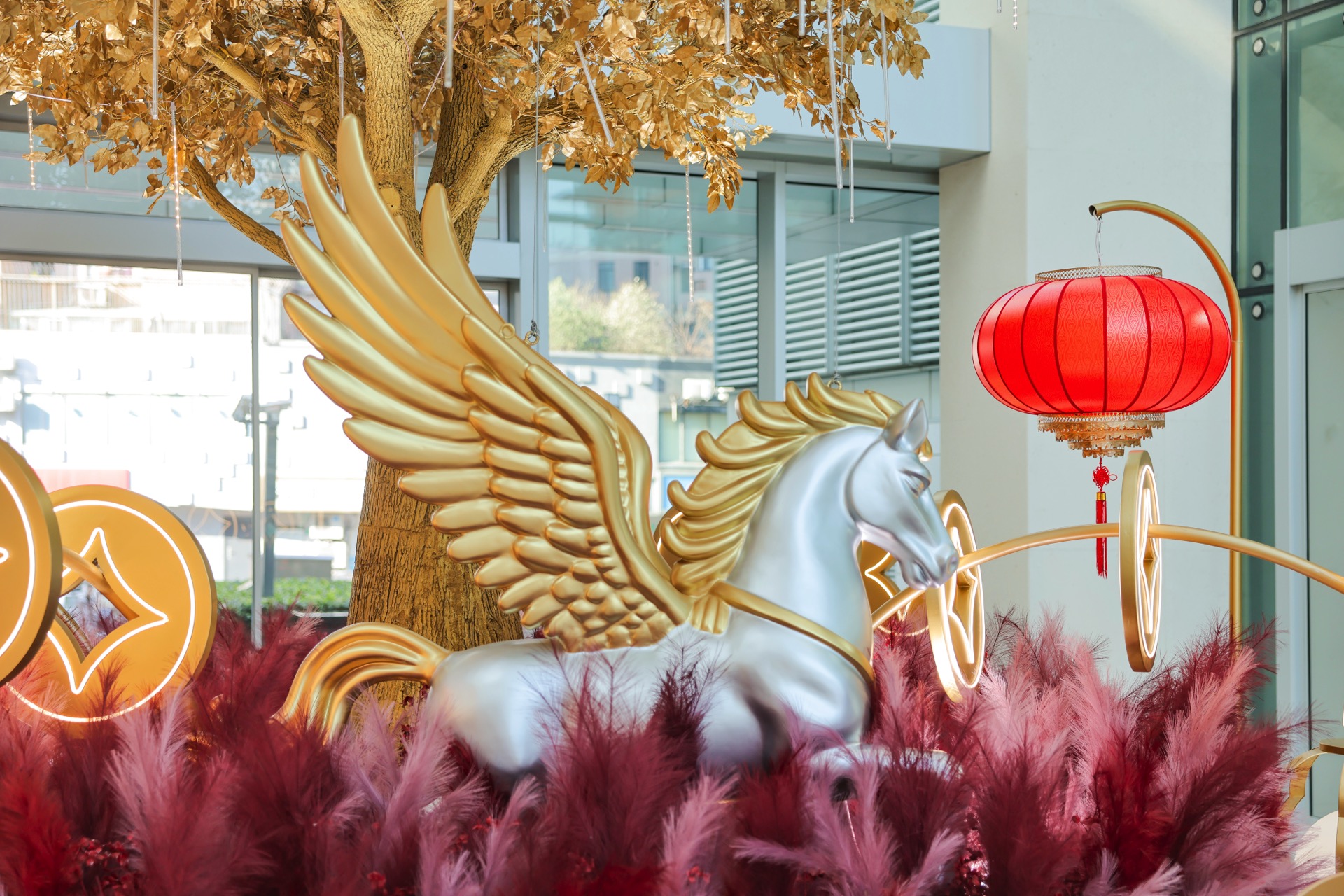 For the 2026 Year of the Horse, One Museum Place’s festive installations exude elegant traditional charm: a wishing tree draped in gilded coins paired with a prancing golden flying horse sculpture, symbolizing soaring fortune and blessings; and a book-shaped display features tastefully arranged red lanterns, “Fu” characters and coins, like unfolding a scroll of new-year bliss. A craft activity was held, where customers redeemed limited traditional handcrafts (flower lanterns, paper-cuttings, etc.) for free with same-day receipts.